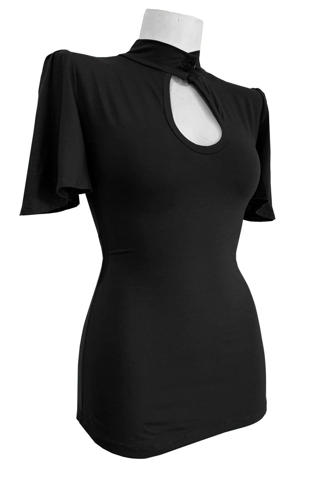 Doll Face Pink & Black Printed Retro Tie Shirt