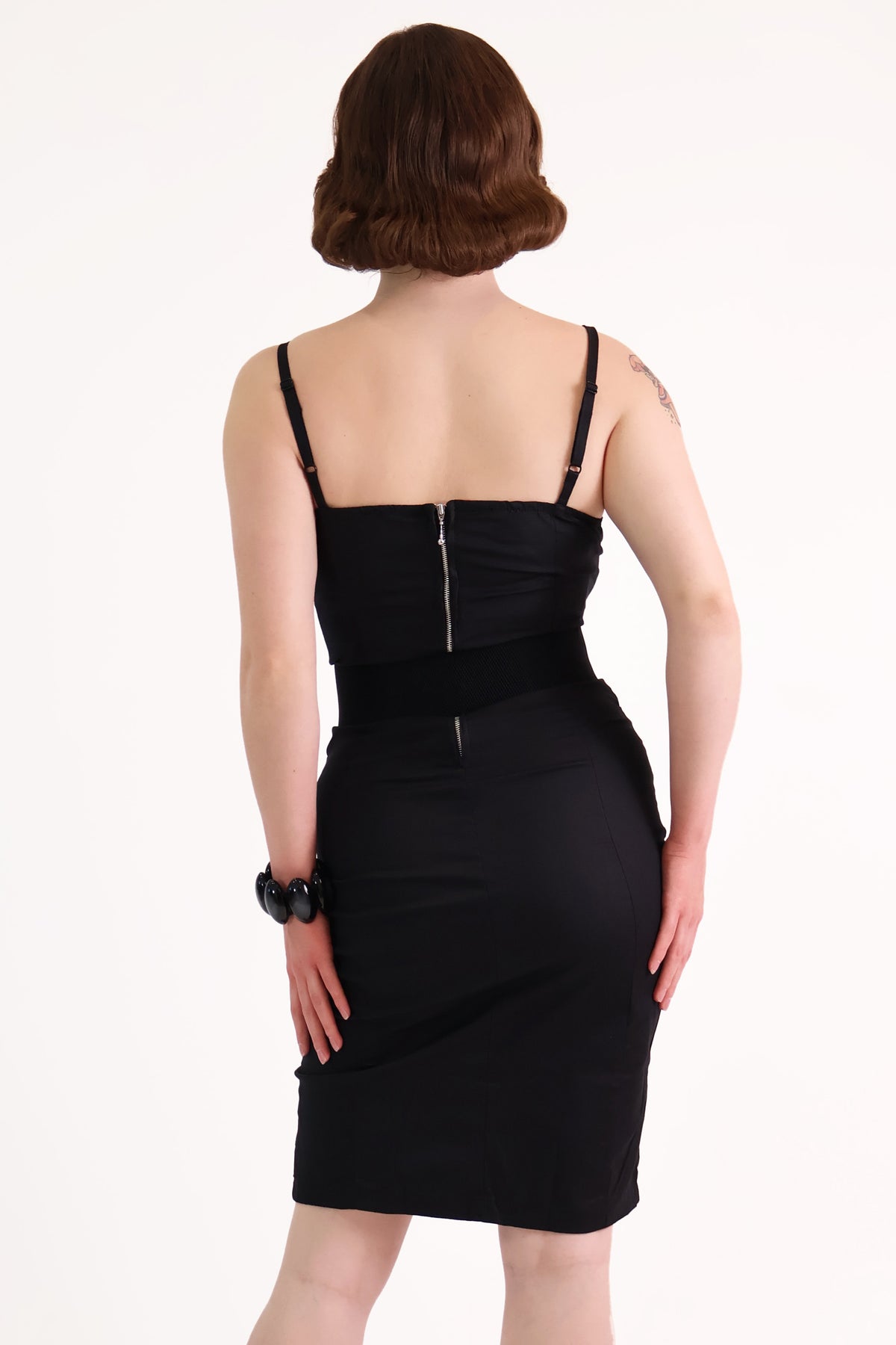 Wiggle your way into this killer cut, fitted dress. With a dark & darling bat shaped neckline, its guaranteed to hug you in all the right places.