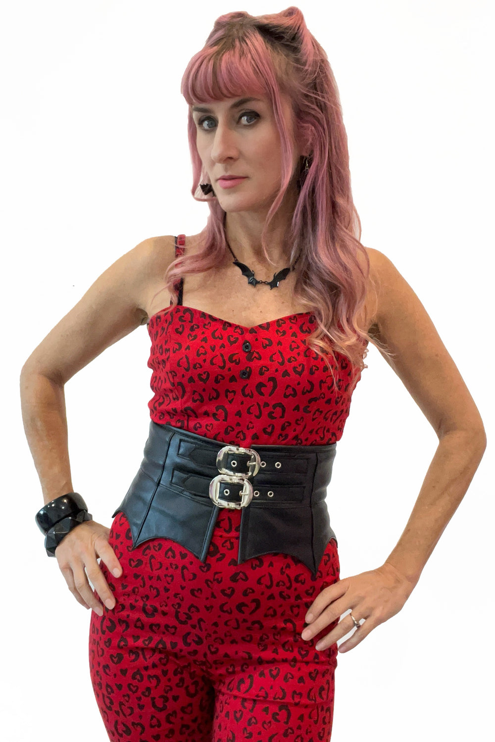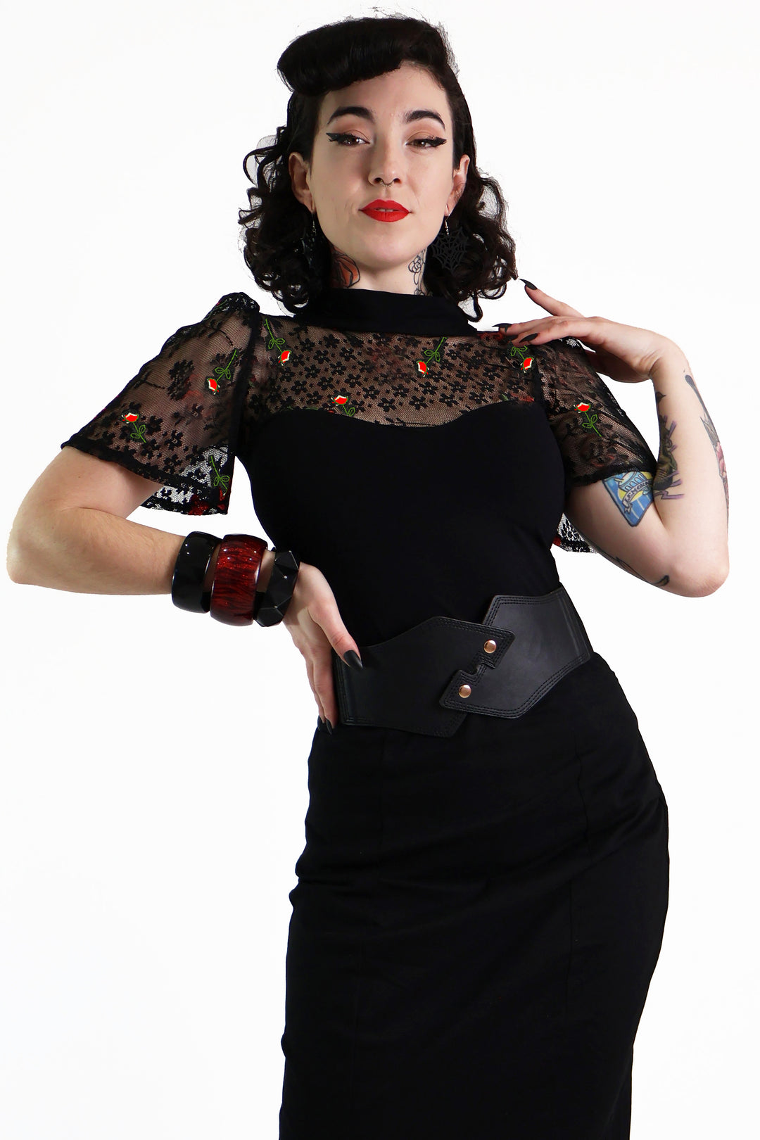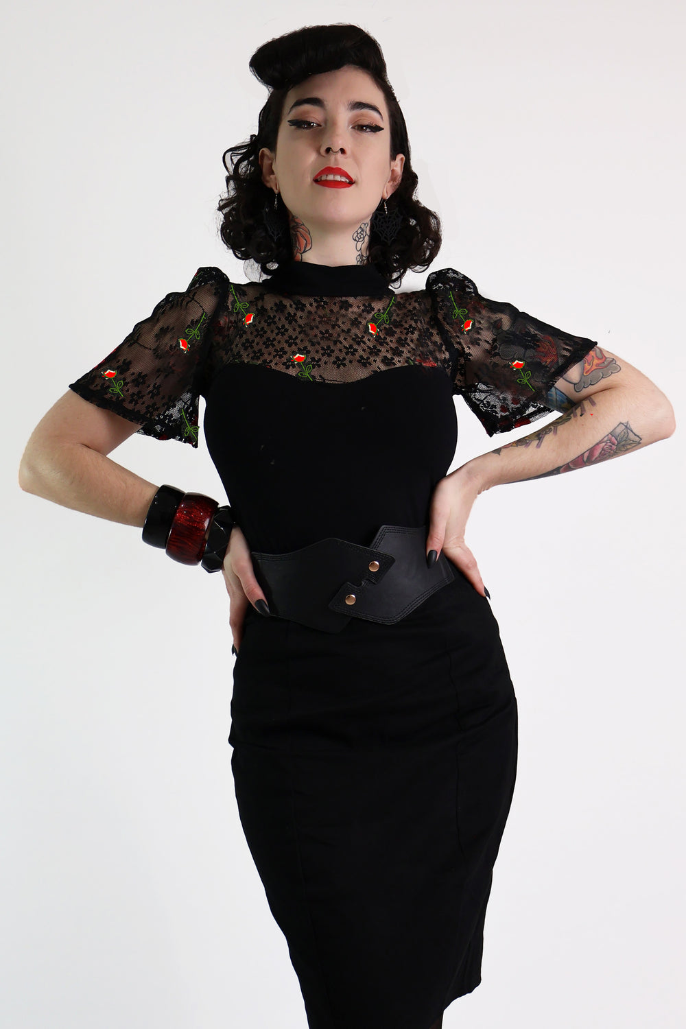 Red & Black Polkadot Short Sleeve Pussybow Top