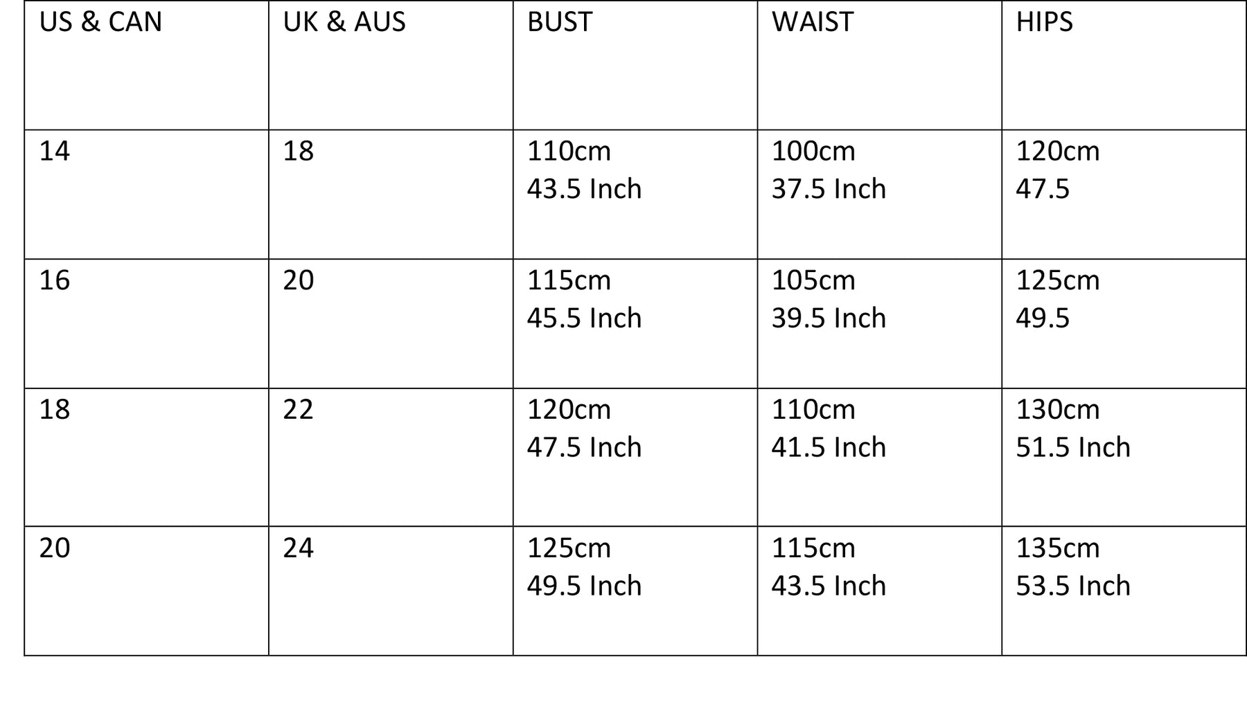 • Size UK16/XL/US12 Bust 105cm-41.3"/Waist 90cm-33.4"/Hips 115cm-45.3"