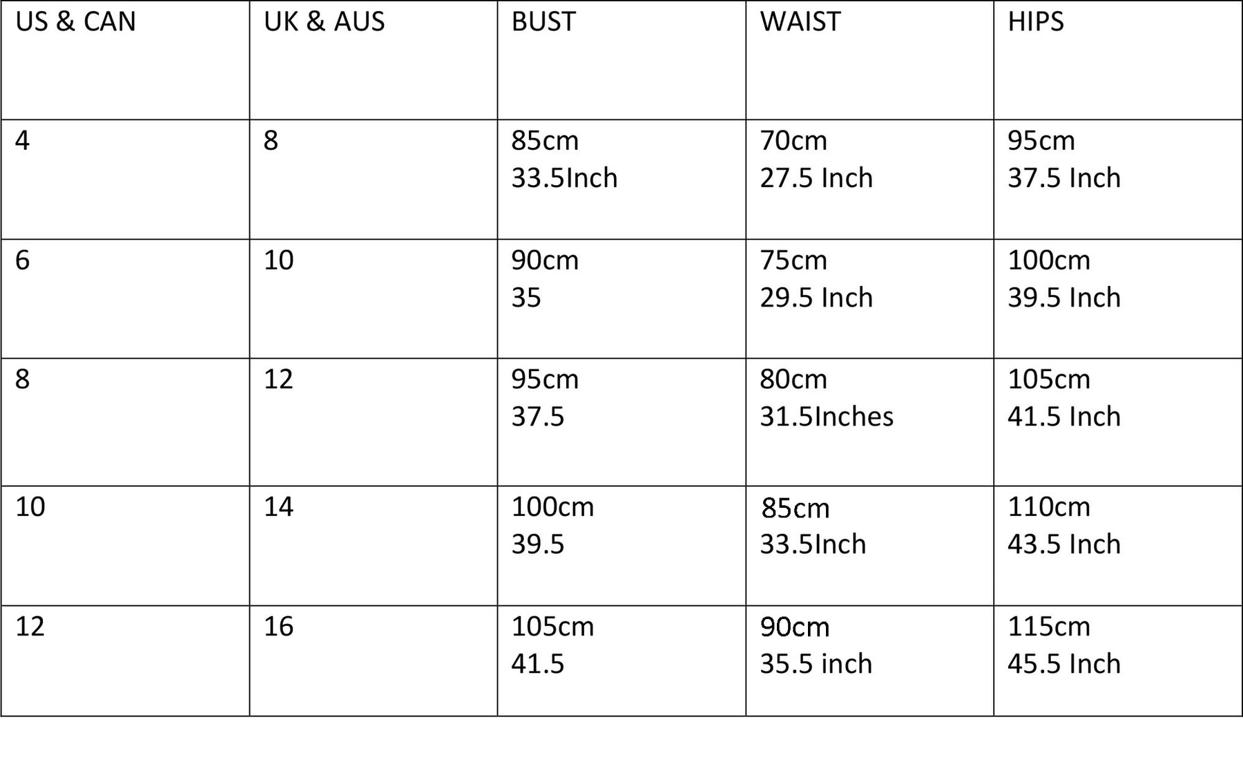 • Size UK8/XS/US4 Bust 85cm-33.5"/Waist 70cm-27.5"/Hips 95cm-37.5"